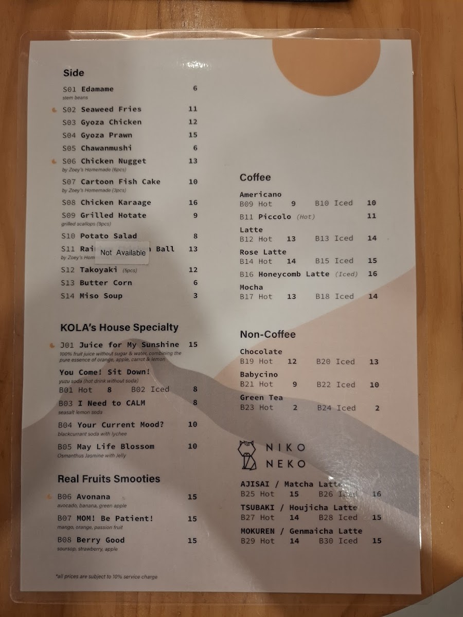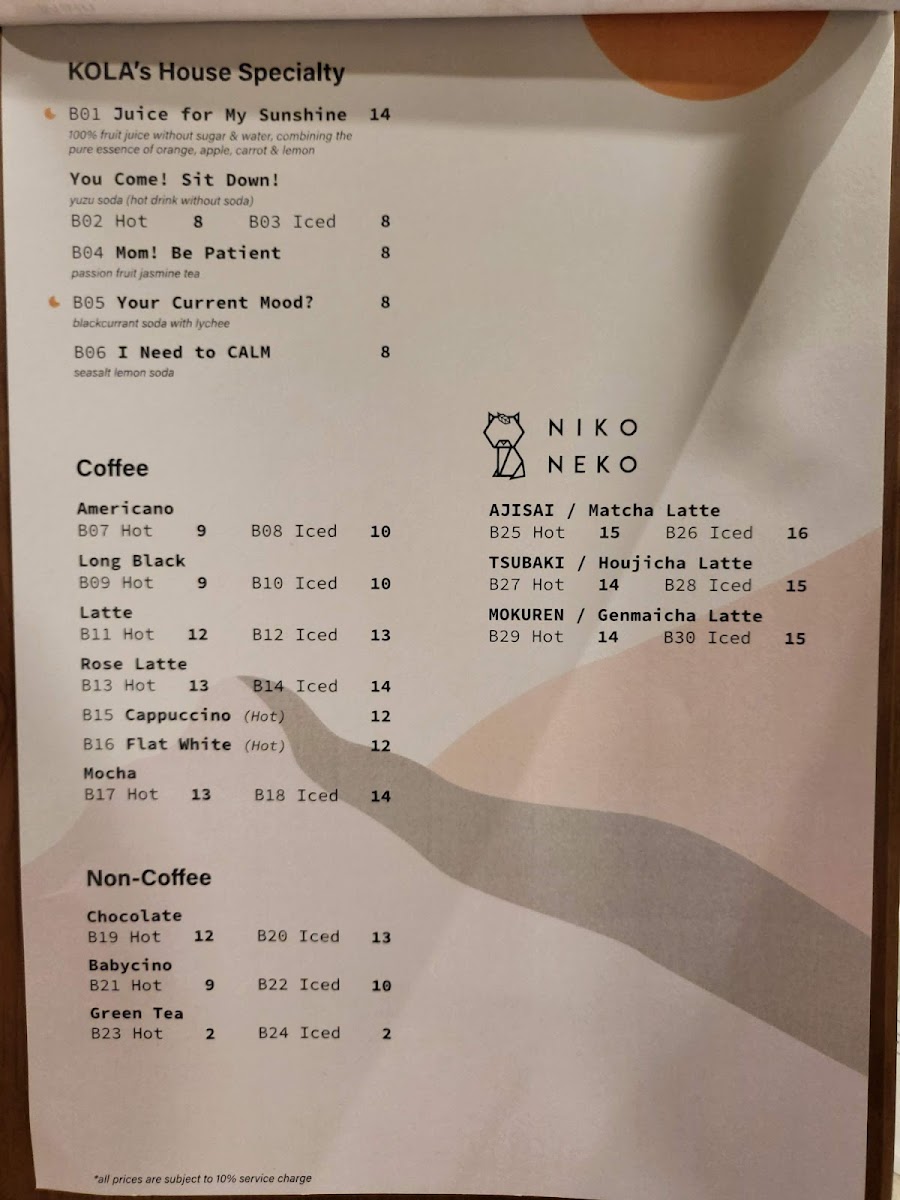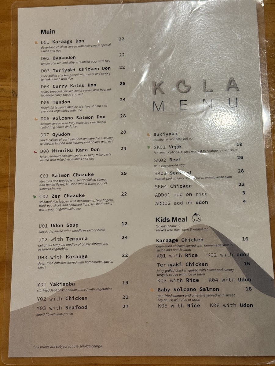 KOLA Cafe boasts a vibrant menu featuring refreshing beverages such as the Seasalt Lemon Soda and delightful Osmanthus Jasmine Tea. For coffee lovers, the Hot Coffee with milk promises a robust flavor, while the food selection is equally enticing, including Karaage Don and Gyudon. Each dish is crafted with care; the tender beef and crispy chicken are particularly noteworthy, receiving high praise from satisfied patrons.